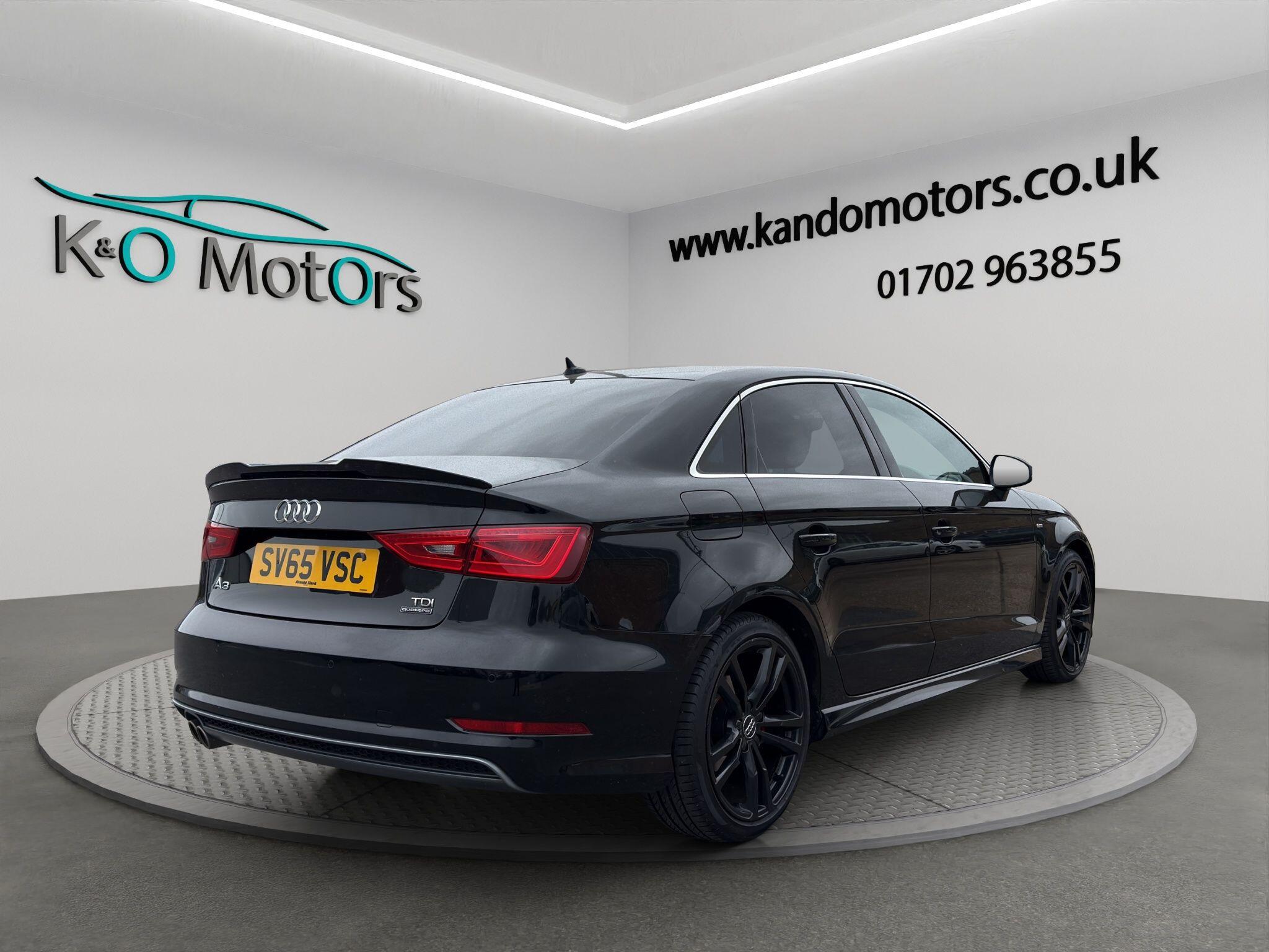 This 2015 Audi A3 S Line S Tronic Quattro ULEZ, finished in Metallic black with black wheels and a black pack, is ULEZ compliant and offered for sale in Southend, Essex. It benefits from fantastic service history, some great optional extras such as SatNav, Dual Climate Control, full black exterior pack, Bluetooth and much more! The car has been fully prepared and is ready for its next owner today. K&O Motors, your trusted independent car dealer in Southend-on-Sea, Essex, specialising in quality used cars at competitive prices. All vehicles are hand-selected for condition, value, and performance and are available for immediate viewing. We are a family run business with 8 staff members (7 are family!) and offer a much more friendly environment to buy your next car than some of the bigger supermarket dealers! At K&O Motors in Southend, every vehicle is HPI clear and undergoes a comprehensive 150 point health check for complete peace of mind. We’re proud to be ranked in the top 5% of AutoTrader dealers for five consecutive years, earning the “Highly Rated for Customer Service” award every year thanks to our commitment to customer satisfaction. Ask a team member how to secure this vehicle today with a fully refundable deposit scheme from as little as £250. With over 300 verified 5-star reviews and a 99%+ customer satisfaction rate, you can buy with confidence. We offer competitive part exchange, flexible finance options for all credit backgrounds (including poor credit), and nationwide delivery. For added reassurance, nationwide warranty cover is available for up to 3 years. We’re conveniently located in Southend, Essex, with free collection from Southend Central or Prittlewell train stations. People have also flown into London Southend airport to visit us! Viewings is advised by appointment. Opening hours: Mon–Fri 9:15am–5.30pm | Sat 9:15am–1pm. Out-of-hours appointments available on request. K&O Motors – Quality Used Cars in Southend, Essex. Contact us today.